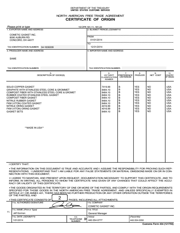 GM 1998-2003 L43/LN2 Gen-2 122 .060" MLS Cylinder Head Gasket, 90mm Bore